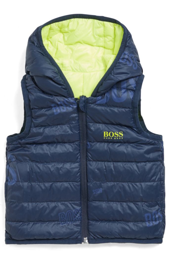Boss Doudoune Sans Manches Reversible Pour Enfant A Capuche Et Logos
